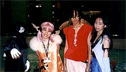 Here are some of the cosplayers taking time-out for photo ops in the hotel lobby. A wide variety of costumes were found during AX99. Here we have characters from Escaflowne, Vampire Princess Miyu and Final Fantasy VIII. |