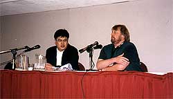 It's industry folks! Here we have convention personality Toshi Yoshida and manga editor Bill Flanagan from Viz Communications letting the world know about what's coming to the store shelves in the coming months and to answer those burning questions from the fans during the Viz industry panel. |