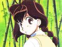Jiyuu finally gets away from her doting father and runs into a forest of bamboo trees. Puzzled by this, she pauses for a moment and runs into Ryujouji Shirou, a very handsome boy who also seems to be on his way to school. Jiyuu and Shirou almost speak simultaneously and introduce each other, but only Shirou suddenly speaks to himself, "Suki da," just like Bantarou. Jiyuu explains to Shirou that she likes to be referred to as Juubei-chan because her father has called her that for as long as she has known. With a few words and introductions, Juubei-chan and Shirou continue to school.