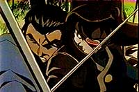 The first episode alludes to things yet to come such as the quiet Shirou who does not say much, but is definitely affected by Juubei-chan's presence. It looks to be an enjoyable series, and since it is only thirteen episodes, that makes it more collectable. The animation and art in this series is well done and pleasing to the eye minus some of the extreme facial expression by Bantarou or Sai. The music follows that of a mixture of regular present day background music and music more inclined to be heard in your better samurai anime like Rurouni Kenshin or Ninja Scroll. There is no opening song as of yet, but the ending song "Forever," sung by 1999 Bishoujo Group, is actually a very catchy tune. The series definitely echoes the feel of the ancient samurai type anime shows that precede it such as Rurouni Kenshin, because of the formalities of the duels, but it pulls the viewers back into the present when it is just Juubei-chan and not her counterpart.