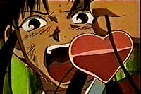 Juubei-chan is a promising series that combines the popular ancient samurai element with present day junior high school mayhem and romance. Daichi has outdone himself this time with this new innovative series. Already out commercially on LD, DVD, and Video, the first volume has the first episode and the other four volumes will contain three. This author thinks this show's genre could be considered mahou shoujo (magical girl). The reasoning behind this is that it involves an object that allows the main female character to transform magically. Even though it lacks that "cute element" of the usual magical girls show, it is replaced with a "wacky, yet cool element," which is what makes Juubei-chan such a charming show. Definitely something to get for fans of samurai and wacky hijinks.