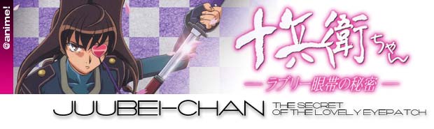 Juubei-chan, Lovely Gantai no Himitsu (Juubei-chan, Secret of the Lovely Eyepatch) is the newest anime from the creator of (Kodomo no Omocha (Child's Toy), Daichi Akitarou. The show started airing on TV Tokyo on the 5th of April at 1:15 am of this year and ran for thirteen episodes. Juubei-chan is about a young junior high girl named Nanohana Jiyuu, who finds herself in an odd predicament when she meets up with Koinosuke a young, yet three hundred year old samurai warrior.