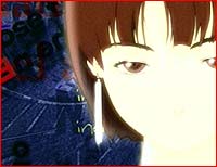 One night in October of 1998, the author was relaxing in a room at the Westin Osaka after a day of traveling around Kyoto visiting various temples. It had been raining out, which lent the color of Osaka's night lighting a peculiar aspect of clarity as the water on the roadways reflected the lights. Next to the hotel is the impressive Umeda Sky Building, a pair of 170 meter tall towers connected by a wide span at the top. The light show that played out from this span was constantly shifting, looking very like something from Close Encounters of the Third Kind. The interesting point to note is that the building itself was not in the field of view from the room's window, but the reflections of the lights on everything in the area was easily visible. The hotel room itself was done in an ultramodern and very elegant black marble and gold trim motif. With the giant bay window looking out over the cityscape of distant reflections, one could not help feel just a little like the subject of a Syd Mead painting. It was about 1:30 in the morning, and the television started showing one of the late-night anime programs. The show's title was Serial Experiments Lain, and right away one could tell that this was not born from any of the ordinary anime plot structures. (It is, in fact, the anime realization of a video game for the Sony Playstation.) On the surface, the show appears to describe the efforts of a junior high school girl Iwakura Lain as she gains an interest in the online lifestyle, but ultimately what the show reveals goes well beyond such superficial themes as online activities and the habits and desires of a schoolgirl.