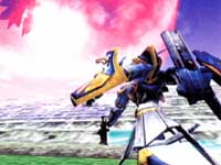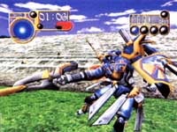 I'm a big Armored Core freak. Take a look at my rating systems. Those are little Cores. So, needless to say, I was pretty psyched to find out that From Software would be developing a mech combat game for the Dreamcast. So, what exactly is Frame Gride? Think Escaflowne-meets-Armored Core.