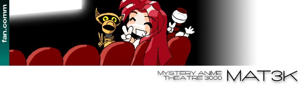 I mean you know, MST3K can get away with it (2 hour movies) because they've got like seven commercial breaks. You can go off to the bathroom real fast, you can go off and get yourself a coke. You've got two or three commercial breaks in MAT, 40 minutes of anime and then a break and the anime is bad, is just too long. So I think we're going to go back to the hour format. |