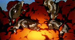 Take that scenario and throw in a bunch of samurai, a big pile of wild boars, arrows whizzing wildly through the air and some extraordinary special effects and visuals and you get a timeless epic that causes the viewer to take a step back and think about what they had just seen. The film shows that there is opposition in all things, including inside ourselves. It shows us that despite all the hatred and fighting in that remote area of Miyazaki-san's 15th century Japan, that the same scene still continues today and that there is a way to preserve both sides. That's the key feature to the story of Mononoke Hime. We all are left with the final solution.
