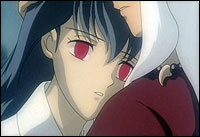 Yes, we all know, the way to get the hero to do anything is to kidnap the girl. Menomaru takes Kagome and uses her to force Inuyasha to break the seal on his father's powers. Inuyasha complies and they go from the frying pan into the fire as Menomaru absorbs Hyoga's remaining powers, increasing his level of invincibility. Ruri and Hari, with the possessed Kilala, take on Sango and Miroku, removing them from Inuyasha's side, leaving him to deal with Menomaru alone. With Kagome in his clutches, Menomaru is able to take control of her and use her to keep Inuyasha occupied while he attempts to gather more souls. Eventually the spell on Kagome is broken, but the group has been dealt a huge blow with the increasing powers of Menomaru. With all odds against them, it seem that it's curtains for the group.