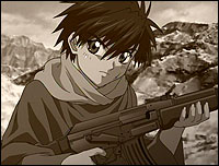 Sousuke Sagura is your typical teen boy, if your typical teen boy was raised and trained at a very early age to fight in war after war after conflict after anti-terrorist activity. Now fairly settled into his role as Kaname Chidori's "bodyguard" (whether she wants one or not), Sousuke has to deal with newer, more bothersome things than armed battle. Like girls who have crushes on him. Though one suspects that detonating your locker because of suspected contraband (a love letter) is going just a little overboard. And there's also that camouflage/gilly suit he dressed up in when he trained his sniper rifle on the aforementioned girl. Can never be too careful with a suspected stalker. Still immensely naive about the nuances of modern teenage life (you can't learn about love on a battlefield, after all), Sousuke manages to survive on his battle-hardened wits alone. Well, that an his well-kept arsenal of weapons and intel.