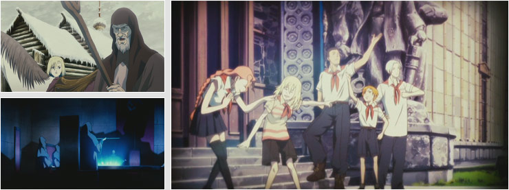 The animation is top notch. Studio4ºC has a history of animation-rich productions, with shows like Spriggan and Memories on the feature film side and things like the new hit re-imaging of the classic Thundercats series. First Squad's animation is nothing less than their previous efforts, combining the traditional cel animation with CGI generated graphics in an effective mix that worlks well. Also, the use of muted colors adds to the atmosphere of war throughout the film.
